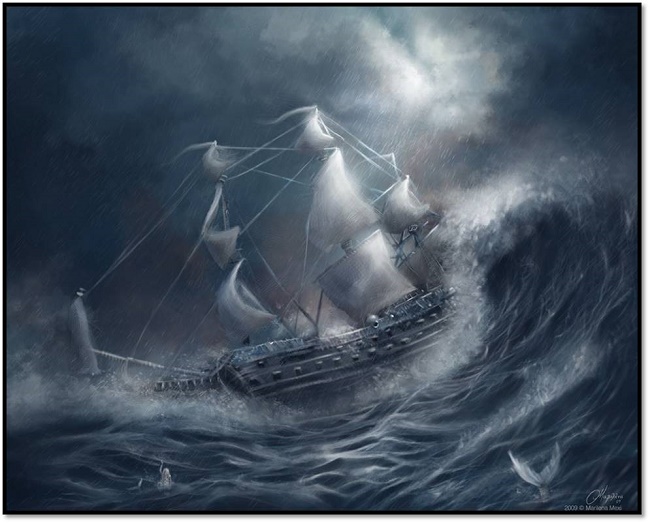 Эти строки были адресованы королеве Изабелле и принадлежат Христофору Колумбу, который оставил красочное описание бури, настигшей его на обратном пути во время первого плавания 12-17 февраля 1493 г. Бутылка была выловлена, но... через 359 лет.