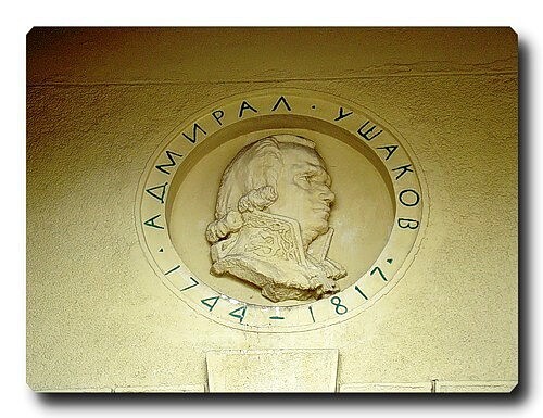 Барельеф Ф.Ф. Ушакова на фасаде наземного павильона станции метро "Балтийская"