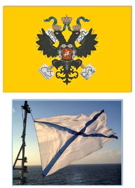 Особо выделяется Андреевский флаг – косой синий крест на белом фоне. С 1707 года он прочно утвердился в российском военном флоте. Разделение на четыре части символизировало господство России на четырёх морях: Белом, Балтийском, Чёрном и Каспийском.