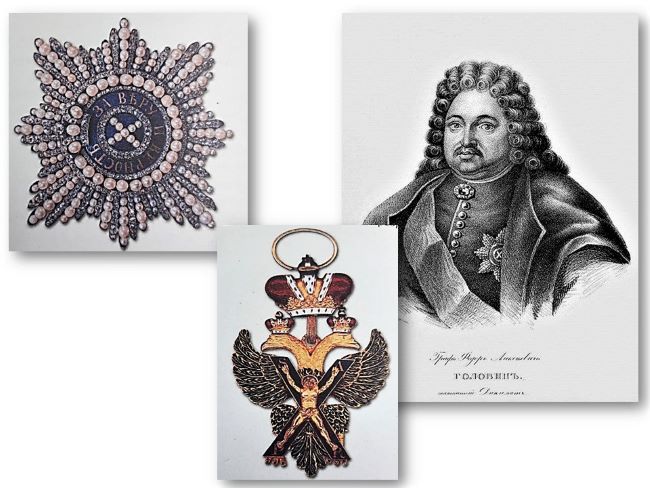Первым орденом, который был учрежден Петром Великим в 1699 году, стал орден Святого Андрея Первозванного. Проект устава ордена Андрея Первозванного составлялся при непосредственном участии царя. Первым кавалером ордена стал граф Федор Алексеевич Головин – ближайший соратник Петра I, отличавшийся незаурядным умом и выдающимися военными и дипломатическими талантами. Кавалер ордена Святого Андрея Первозванного имел право ношения отличительных знаков, состоящих из золотого, покрытого голубой эмалью косого Андреевского креста с изображенными на нем святым и восьмиконечной серебряной звездой с девизом «За веру и верность». Всего за время царствования Петра I награды удостоились 38 человек, в том числе четверо за отличие в Полтавской битве. Орден Святого Андрея Первозванного царь ценил очень высоко и жаловал весьма скупо.