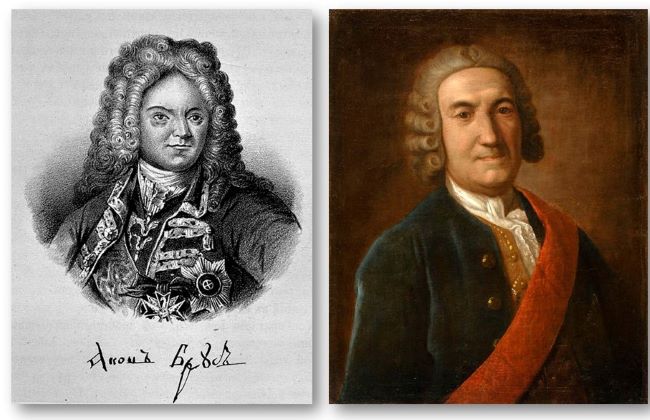 Портреты: Я. В. Брюс, граф Ф. Санти