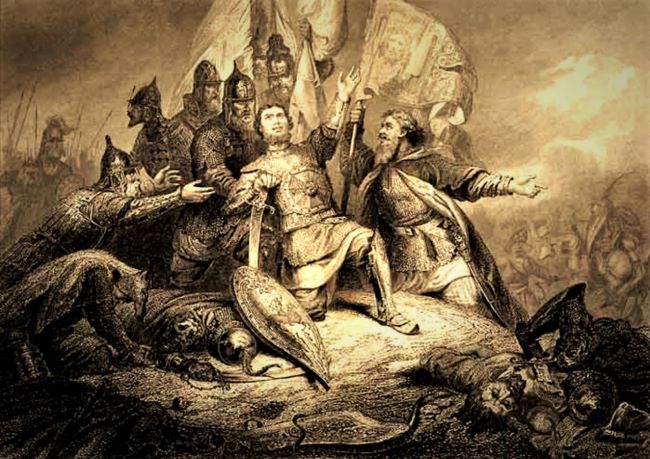 Князь Дмитрий Пожарский в битве под Москвой. Гравюра с рисунка А. Шарлемана. 1863