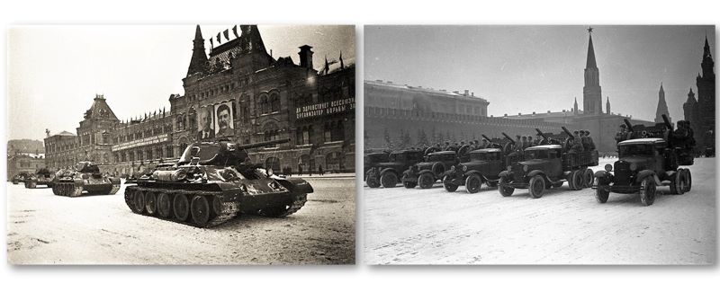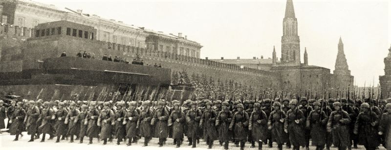 Легендарный парад, посвященный 24-й годовщине Октябрьской революции, прошёл 7 ноября 1941 года. Мало кто верил в возможность такого мероприятия. Враг слишком близко подошел к Москве. Самолеты противника базировались в Клину, Можайске, Малоярославце. Столицу ежедневно бомбила немецкая авиация. На подступах к ней шли ожесточенные бои. Стали распространяться слухи о скорой сдаче Москвы, об отъезде из города И. В. Сталина и членов правительства. Весь мир знал об обещании Гитлера принять парад немецких войск на Красной площади поверженной русской столицы. В немецких обозах был груз особого назначения – парадное обмундирование, в котором предстояло пройти героям вермахта по нашей главной площади.