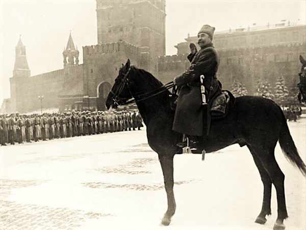 Парад принимает маршал С. М. Будённый.