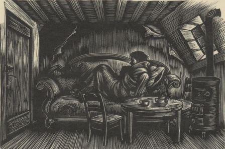 Родион Раскольников живёт в комнатушке, похожей на «каюту», «шкаф» или даже «гроб». «Каморка его приходилась под самою кровлей высокого пятиэтажного дома и походила более на шкаф, чем на квартиру. Квартирная же хозяйка его, у которой он нанимал эту комнату, помещалась одною лестницей ниже … Каждый раз при выходе на улицу ему непременно надо было проходить мимо кухни, почти всегда настежь открытой на лестницу. Он бросился к двери, прислушался и стал сходить свои тринадцать ступеней, осторожно, неслышно, как кошка». Во дворе дома Раскольникова можно и сейчас найти лестницу, тринадцать ступеней которой ведут на последний этаж.