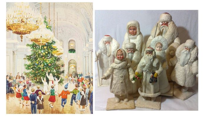 После революции в начале 1920-х годов, в эпоху борьбы с «пережитками прошлого», празднование Рождества и Нового года было запрещено. Производство елочных игрушек прекратили. И только с 1935 года комсомольским организациям поручили устраивать для детей новогодние ёлки. Главной стала ёлка в Колонном зале Дома союзов. Огромные ели с красными звездами на верхушках устанавливались на улицах, украшенных праздничной иллюминацией.