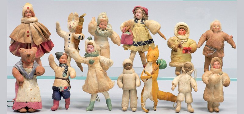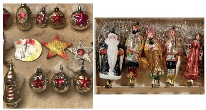 Новогодняя игрушка наглядно отразила историю нашей страны. В довоенный период выпускались украшения с советской символикой: дирижабли с надписью: «СССР», шары с серпом и молотом, спортсмены и пионеры с красными флажками, дети из разных республик в национальной одежде.