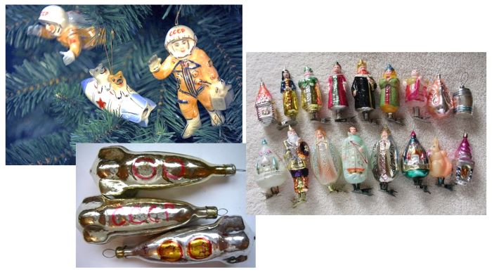 В 1960-е годы, после полёта в космос Юрия Гагарина, в наборах ёлочных игрушек появились самолеты, спутники, ракеты, космонавты. Много игрушек было создано по мотивам сказок А. С. Пушкина к его юбилею: старик и старуха с золотой рыбкой, царевны и царевичи. Остались с тех времен и другие сказочные герои – Дюймовочка, Арлекин, Маленький Мук. Сегодня такие елочные украшения считаются настоящими раритетами.