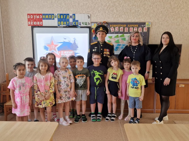 Дошколят из детского сада №1 ждала встреча с настоящим военным, офицером-подводником. Он рассказывал будущим защитникам о своей профессии, о кораблях, охраняющих рубежи Родины, делился интересными историями из военной жизни.