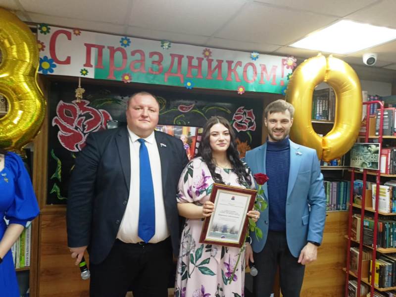 После теплых слов пожелания благополучия и здоровья, специалисты библиотеки получили Почетные грамоты, благодарности и цветы.