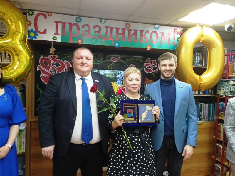 А также коллектив библиотеки поздравила Председатель краевого профсоюза работников культуры Камчатского края Галина Ивановна Жукова и вручила Почетные грамоты.