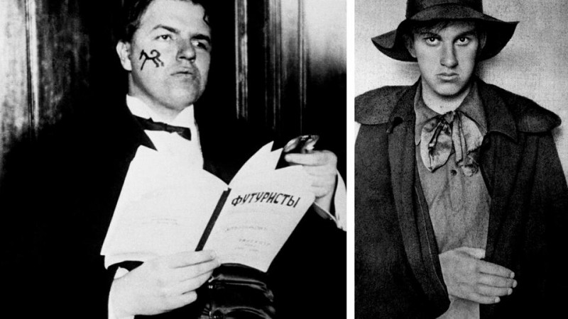 Здесь молодой художник познакомился с представителями футуризма: Давидом Бурлюком, а позже – с Велимиром Хлебниковым и Алексеем Крученых. Футуризм - авангардистское литературное течение начала 20 века, отрицавшее художественное и нравственное наследие прошлого, проповедовавшее стремление к новому искусству путем разрушения старых форм и условностей искусства. Маяковский начал писать стихи, от которых его новые товарищи были в восторге. Свой творческий дебют Маяковский описывал так: «Днем у меня вышло стихотворение. Вернее – куски. Плохие. Нигде не напечатаны. Ночь. Сретенский бульвар. Читаю строки Бурлюку. Прибавляю – это один мой знакомый. Давид остановился. Осмотрел меня. Рявкнул: "Да это же вы сами написали! Да вы же гениальный поэт!" Применение ко мне такого грандиозного и незаслуженного эпитета обрадовало меня. Я весь ушел в стихи. В этот вечер совершенно неожиданно я стал поэтом».