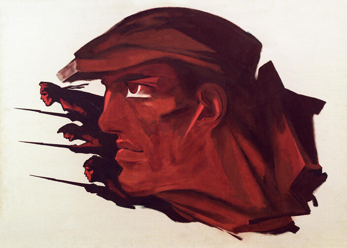 1914 год ознаменовался еще одним серьезным шагом в биографии поэта. Он захотел стать добровольцем, но власти решили не рисковать, помня о его политической неблагонадежности. В итоге на фронт он так и не попал, и вскоре выпустил произведение под названием «Вам», в котором оценивает царскую армию. Помимо этого, он стал автором гениальных стихотворений «Война объявлена» и «Облако в штанах».