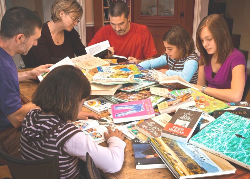 Папа - тренер спортивной школы по единоборствам - приобщил к чтению всю семью. Читают больше 15 лет. Записал сначала сына. Потом двоих дочек. Сам читает и дети -постоянные читатели.