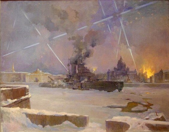 | Г. Фитингоф «За водой на Неву». 1942 | А. Заколдин-Митин «Зенитки на Неве» 1942 |