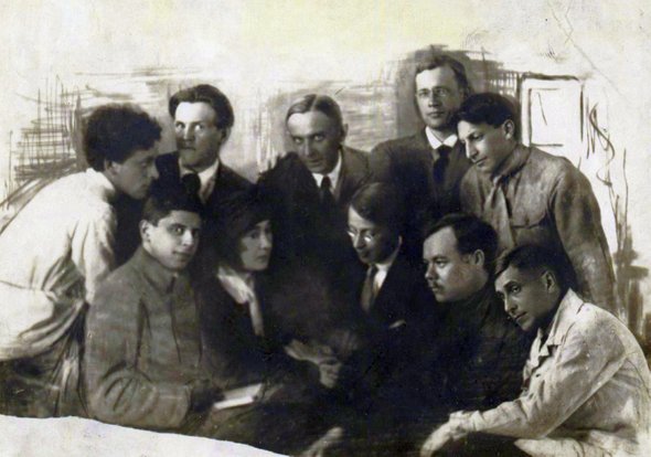 ЛИТО "Серапионовы братья" в 1920-е г. Слева направо: К. Федин, М. Слонимский, Н. Тихонов, Е. Полонская, М.Зощенко, Н. Никитин, И. Груздев, В. Каверин.