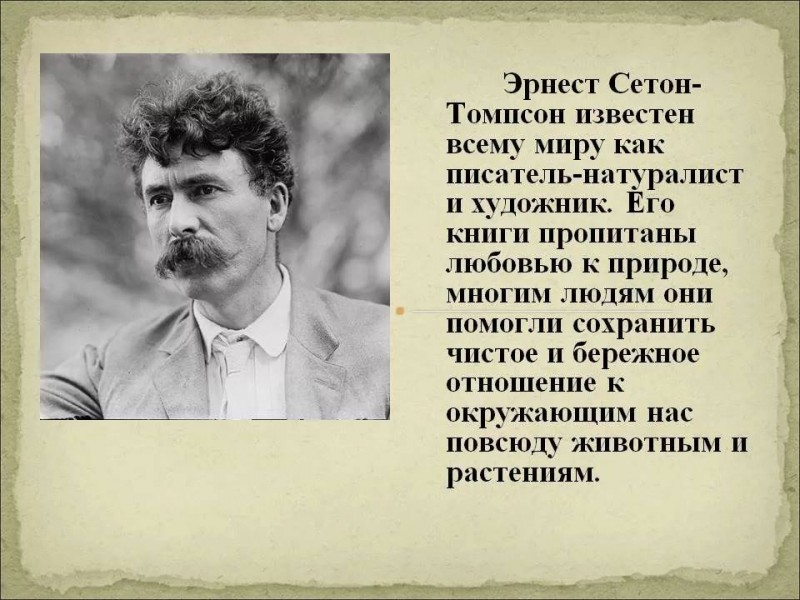 В этом году исполняется 160 лет со дня рождения канадского писателя, художника-анималиста, естествоиспытателя и общественного деятеля Эрнеста Сетон-Томпсона. Так как Соединенные Штаты играли в его жизни почти столь же значительную роль, что и Канада, его по праву можно назвать также американским писателем.