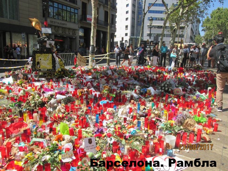 Терроризм – это угроза всему миру. Испанский город Барселона – здесь гуляют туристы, работают уличные художники и торгуют различными сувенирами. В августе 2017 года террористы проехали зигзагом по улице, давя людей. Погибло несколько десятков человек. В каждом месте гибели людей образовались стихийные мемориалы.