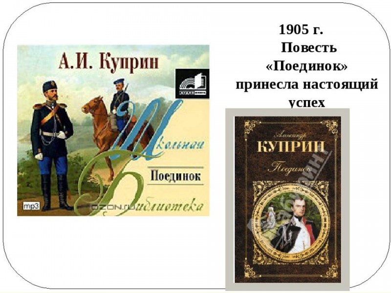 После обучения и службы, в мае 1905 года, в сборнике «Знания» появляется повесть «Поединок», документ об армии, державшейся на страхе и унижении солдат и сгнившей до сердцевины офицерской касте. Сила военных рассказов «Ночная смена», «Дознание», «Поход» - в точности изображения армейской среды.