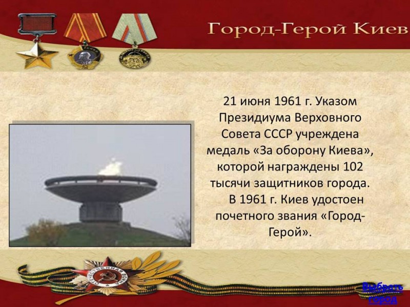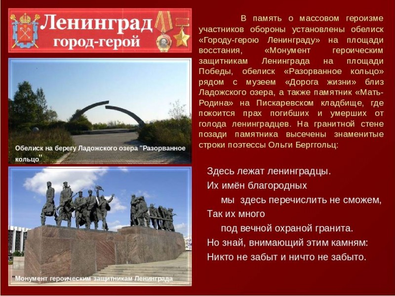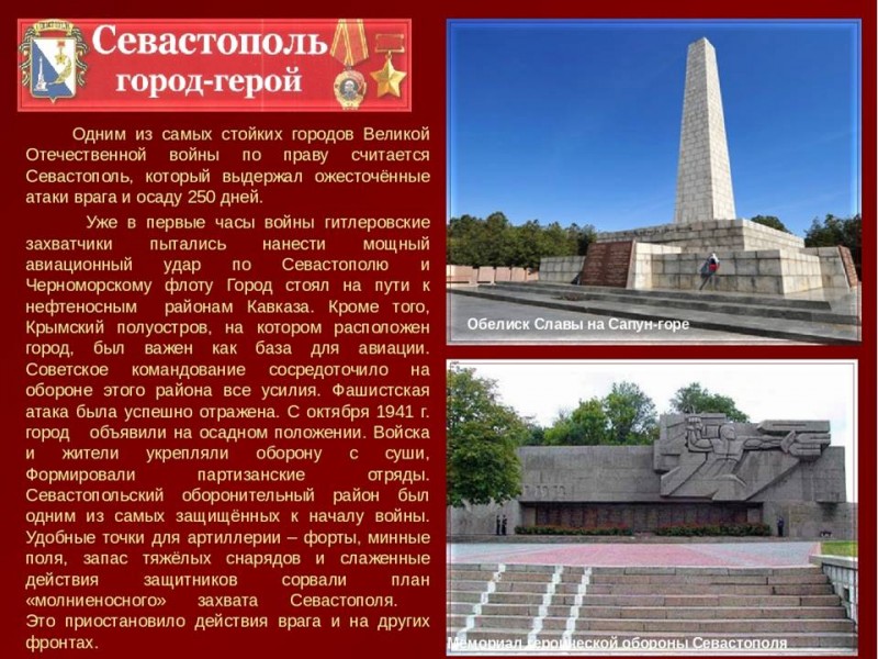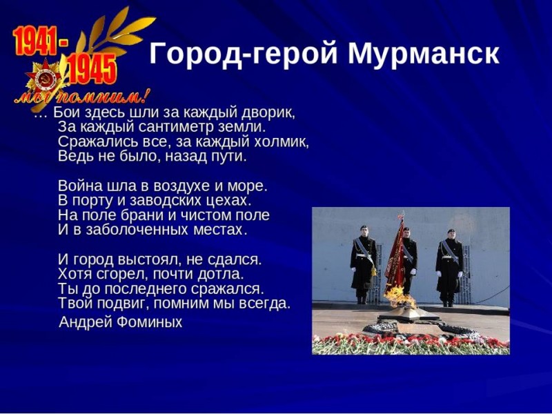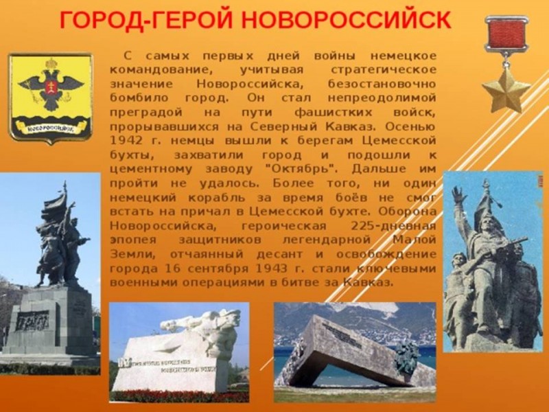 75 лет назад наши прадеды одержали победу в небывалой в истории битве с фашизмом. Мы никогда не забудем подвиги тех, кто добывал её в тяжелейших боях на фронте и в тылу, кто отстоял независимость нашей страны, а затем восстанавливал её из руин в трудное послевоенное время. С годами мы все больше понимаем историческое значение этой Победы. Глубочайшего уважения и благодарности заслуживает каждый участник Великой Отечественной войны. В её истории немало примеров массового героизма, отваги и стойкости. Героями в те годы становились не только люди, но и целые города.