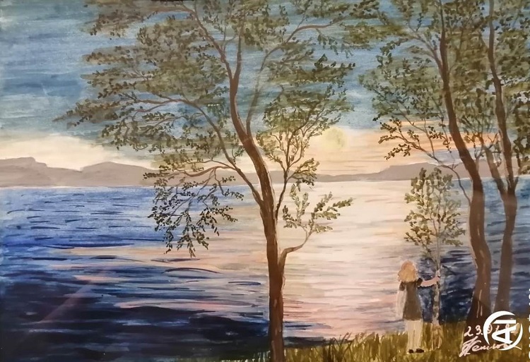 ...Баночка с водою. Лист бумажный. Оживляю краску кистью влажной, И на лист ложится полоса, Отделив от моря небеса....